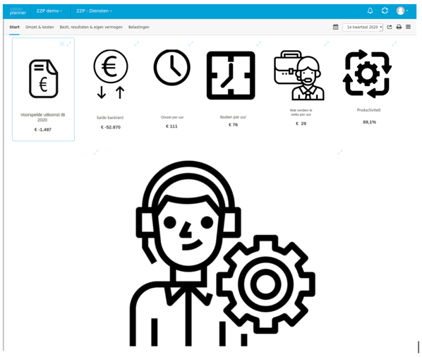 Kan dit via een Visionplanner dashboard? Jazeker, we kunnen lopende het jaar een indicatie geven van je vrije ruimte, de verwachte IB last, monitoring van de voorlopige aanslag en een indicatie voor opbrengsten per uur, project of kilometer. Ter inspiratie heb ik een dashboard voor een consultant, schilder en chauffeur gemaakt.