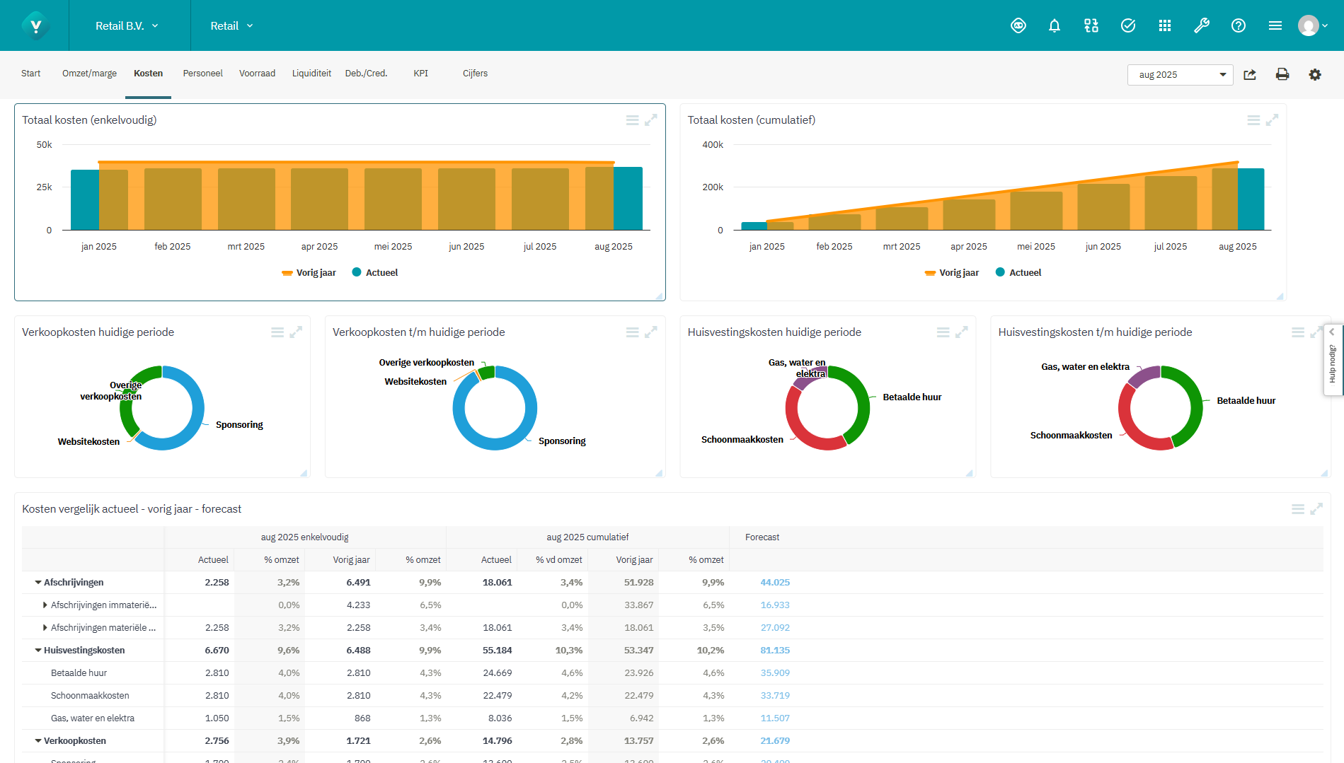 - Cijfermatige kostenanalyse inclusief forecast voor het gehele boekjaar.
