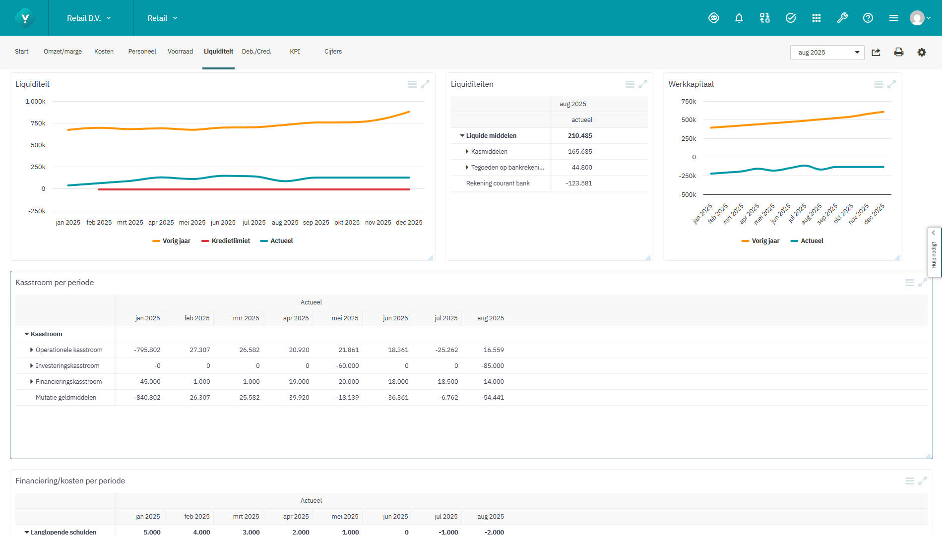 Het dashboard voor de retailbranche is ook beschikbaar met de mogelijkheid voor begroting, prognose en consolidatie.