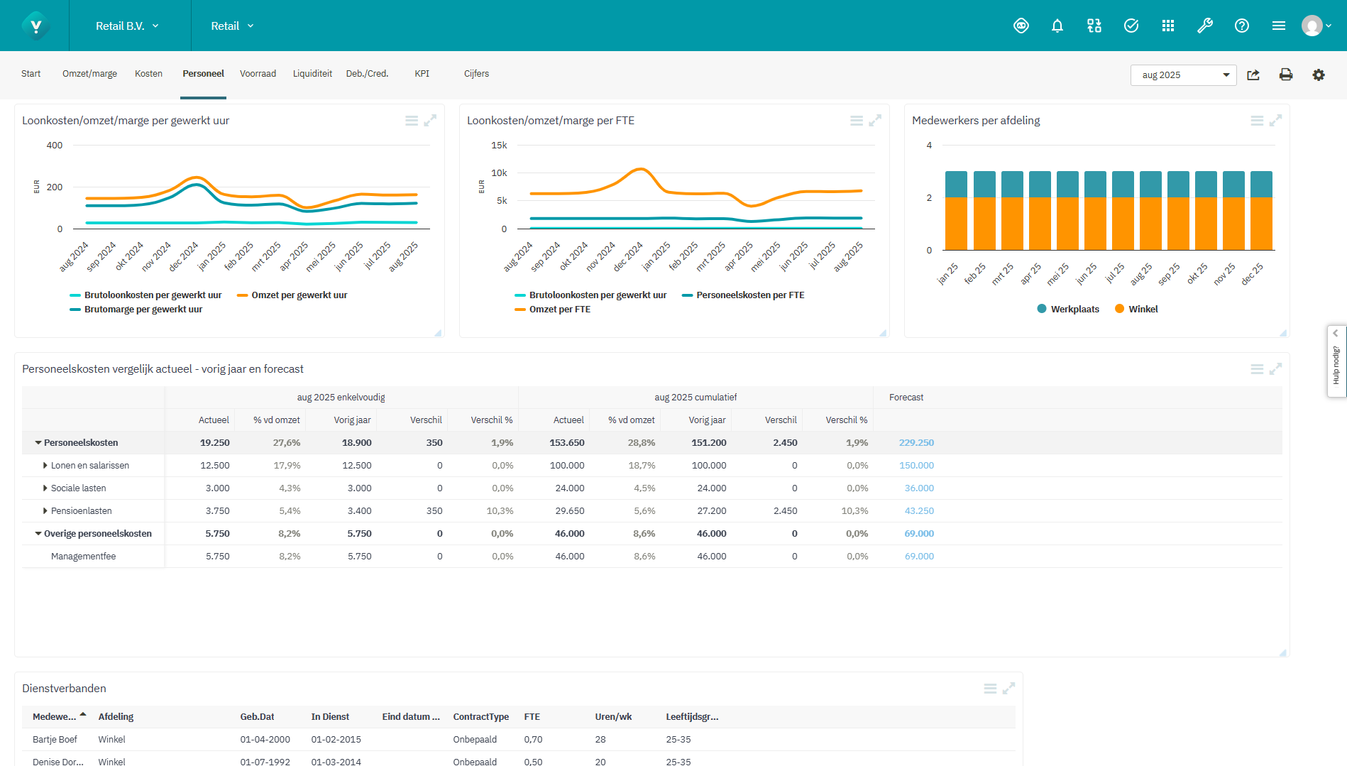 - Cijfermatige personeelskostenanalyse inclusief forecast voor het gehele boekjaar.